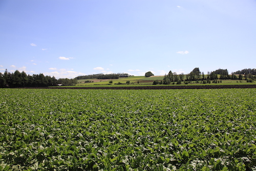畑作の場合、地力(土地の生産力)を維持するために、輪作が欠かせません。冬季の⾧い北海道では栽培できる作物が限られます。北海道では小麦、ジャガイモ、(豆)、てん菜を順番に栽培する輪作体系が確立しています。