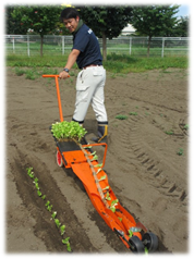 一般的な農業用育苗資材としては、プラスチックトレイやポリ鉢などのビニール製の資材が使用されていますが、当社では紙を主原料としたペーパーポット®を70年来製造・販売してきました。ペーパーポット®を利用したてん菜の栽培技術はてん菜の収量増や機械化に大きく寄与しましたが、近年は連続式のペーパーポット®(チェーンポット®)と簡易式移植機(ひっぱりくん®)を利用した白ネギの栽培方法が、動力を使わず効率的に移植作業が可能になると国内外から大きな注目を集め、急速に普及しています。